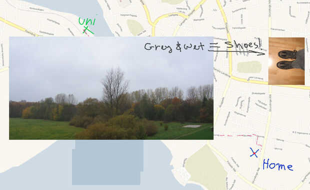 Esta siendo Dinamarca y el otoño: antes de salir siempre mira por la ventana, aún cuando es siempre gris y húmedo y ventoso esta época del año lo recordamos para poner en unos zapatos adecuados antes de salir.