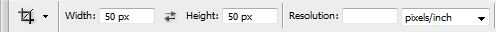 Luego ir a la Barra de opciones , introduzca un valor de 50px para la anchura y altura.