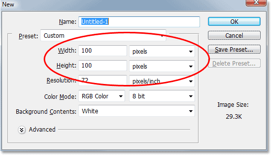 Desde que mina había recortada a 50x50px que creando un documento de 100x100px.