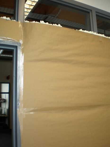 2. material de embalaje cacahuetes debajo de la puerta - bloques de luz así como el descubrimiento de que la habitación es realmente vacía de mirando por debajo de la puerta