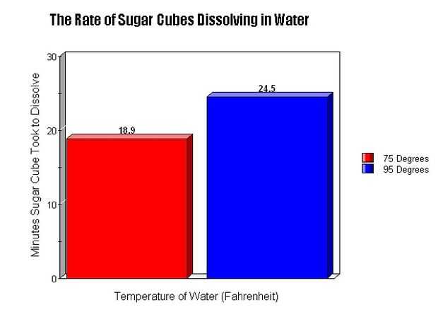 - En mi experiencia, mi hipótesis fue rechazada porque el terrón de azúcar disuelto en agua de setenta y cinco grados Fahrenheit disuelta en menos tiempo que el agua de noventa y cinco grados Fahrenheit.