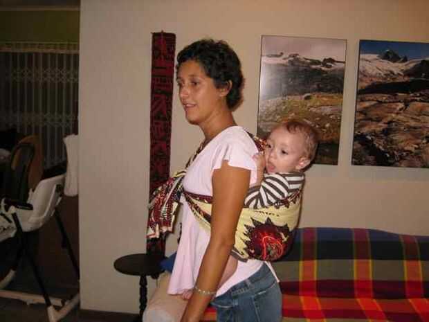 El bebé en esta foto tiene 9 meses. Yo he llevado a él utilizando esta técnica desde que tenía 1 mes de edad. Medida que crecía, mi espalda se volvió más fuerte!