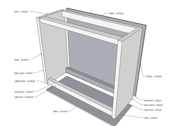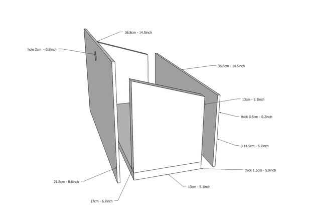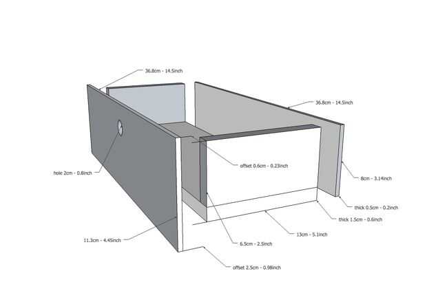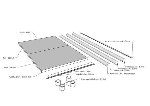 Con la mayor parte del tamaño del gabinete y también del cajón y bandeja de inclinación, es más fácil de calcular las tablas de madera contrachapada. Estaba usando un cuarto pie de 8 x 4 multiplex 1,5 0,6 pulgadas Junta. También dos 4 x 2 pie 0,5 0,2 pulgadas de tabla triplex. Para el marco necesita también dos listones de 210cm - 82,6 pulgadas de longitud. La parte superior de la mesa de trabajo es madera de pino de 1,8 0,7 pulgadas de espesor. El tamaño es de 40 cm x 100 cm o 15,7 pulgadas x 40 pulgadas. Tienes que cortar esto por en medio. La bisagra de piano viene del lado de 50 cm. El nuevo tamaño (abierto) es 50cm x80cm.
