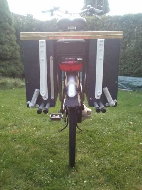 parte 2 fui a la tienda de excedentes del ejército y compró una lata de munición metálica fuerte por 18 $, monta perfectamente en el bastidor trasero de mi bicicleta. He visto muchas personas utilizar batería suave bolsas o cajas de herramientas plás