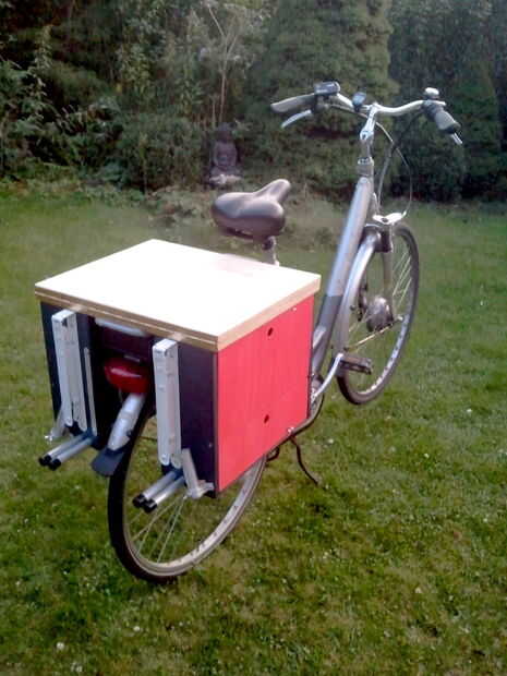 este proyecto muestra una forma de traer los víveres de la caja en el supermercado a la casa. Para ello, diseñé un carro estable que se puede hacer en el bastidor trasero de una bicicleta. Las ruedas se pueden plegar con el carro a la altura del pie.