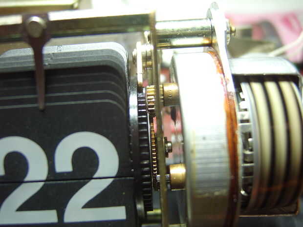 Suerte exclama no funcionaba. Vueltas de motor y eso es todo. Así que he añadido WD40 a los engranajes que viene de la caja de engranajes a los engranajes reales que el reloj flip.
