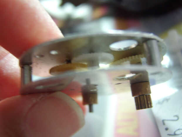 Vuelva a colocar la tapa en la caja de cambios. Sujete todo el conjunto en el reloj y la soldadura de los cables y envuelva con cinta aislante. Coloque el reloj en el conjunto de la base y tirar el exceso de cable nuevo a través de la base con cinta adhesiva a la parte inferior de la base.