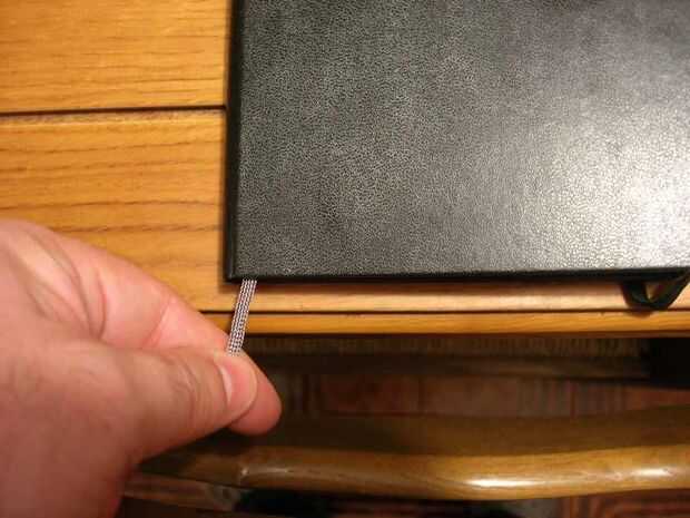tienes que tener una pluma con que Moleskine. Aquí está mi solución.Paso 1: Cortar el elástico a medida. usé 1 pulgada de ancho elástico aunque podría utilizar más de un bolsillo más grande. Necesita tener cierta superposición, como he demostrado en