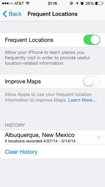 Después de desactivar la comprobación de IP, usted tendrá control total sobre su historial de posición por simplemente encender y apagar la función de posición frecuentes, que ahora sólo depende de la función GPS instantánea.