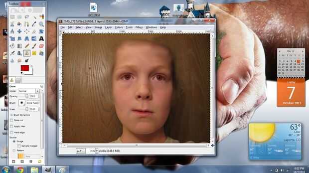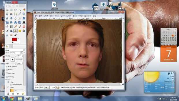 Ahora para la parte que hace usted u otra persona mire muy raro. Tomar la herramienta para clonar y empieza a clonar el fondo sobre el cabello y orejas. Puede dejar los oídos pero elegí no porque con ellos se parece divertido. Una vez que se ha llegado cerca de la línea del cabello Tome la herramienta dedo y comenzar a alisar hacia fuera. No tiene que ser muy buena que será limpiarlo posteriormente. Cuando haya terminado debe parece algo así como esto...