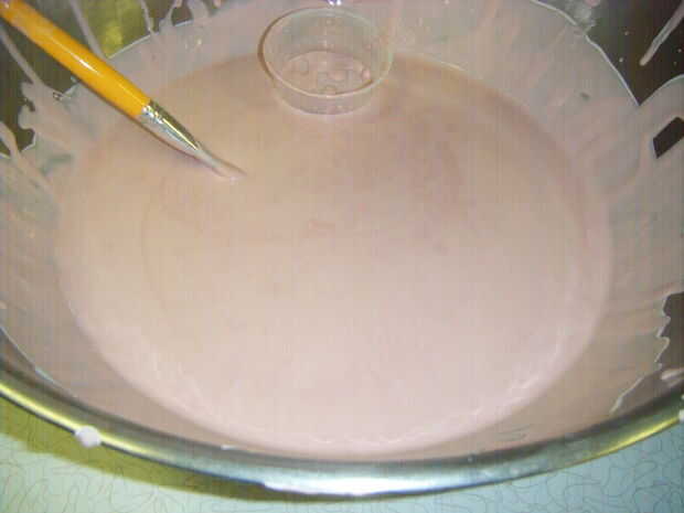 Parece básicamente Pepto Bismal pero hace los azulejos agradable y brillante. También hace que sus colores estallar hacia fuera un poco más. Simplemente sumerja el lado color de las baldosas en una cada vez, asegurándose de que cubrir toda la zona. NO CONSEGUIR BURBUJAS! las burbujas = mal.