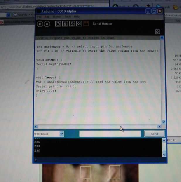 Entonces empezarás a ver los valores de desplazamiento en el espacio negro en la parte inferior del programa arduino. Estos valores son la resistencia, en ohmios, se lee el circuito.