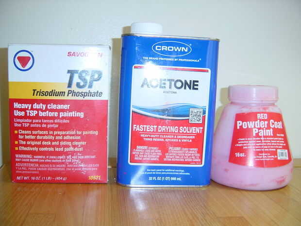 Lavar el objeto utilizando fosfato de trisodio (TSP) agente de limpieza como se muestra en la foto de arriba. Lave el agente por agua del grifo. Luego, aplicar acetona en las superficies para eliminar más grasa. Por favor, póngase guantes para proteger su piel.