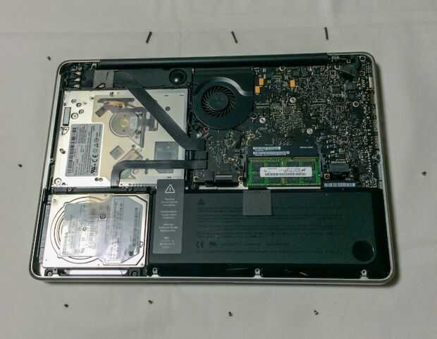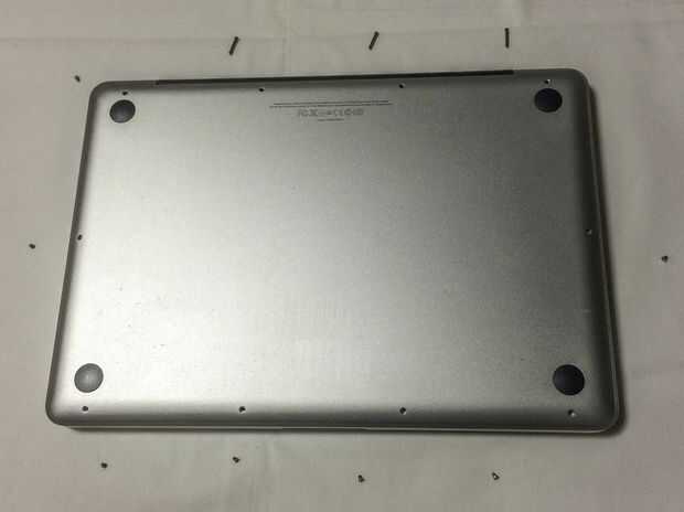 No es difícil recordar donde los tornillos largos van pero hacen una nota mental. En la foto pueden ver los tornillos largos - están en el lado de las bisagras. Esto puede ser diferente en un modelo de 15 pulgadas.
