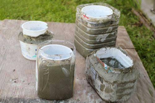 2, poner el concreto mezclado en los envases grandes y luego poner los contenedores más pequeños en Central, perforación como los agujeros de drenaje en la parte inferior. Permanecer completamente seco, recipiente de plástico se puede quitar, puede utilizarse la rugosidad de la superficie de papel de lija grueso.