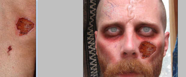 Encontré una imagen agradable roadrash, golpee la herramienta Tampón de clonar al 100% y trabajó poco a poco los bordes, asegurándose de no agarrar nada beyone la "boo boo".