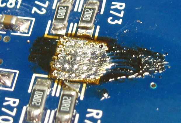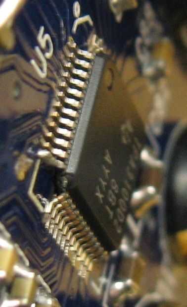 Después de este error, utilicé soldadura mecha para aspirar la soldadura hacia atrás a través de las vias, hasta que el chip pone plana otra vez. ¡ UF! Hecho con la parte difícil.