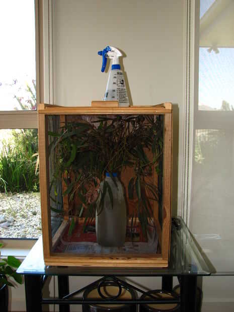 Para preparar la jaula de tu insecto de palo, ponga dos hojas de periódico en el piso de la jaula para que cubra todo el piso. Llenar el vaso con agua y palo de que eucalipto pequeño varias ramas en que los extremos de corte están sumergidos en el agua. Asegúrese de que estas ramas tienen hojas frescas sobre ellos para el insecto de palo comer. Luego coloque el florero, hojas y todo, en el piso de la jaula. Ahora está listo para introducir el insecto hoja Espinosa a su nuevo hogar.
