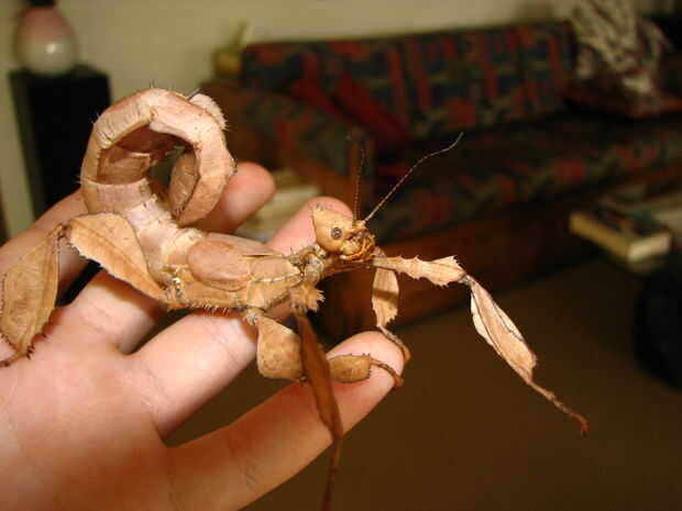 Para elegir un lugar su mano sobre el insecto palo (tienen un instinto para subir) y suavemente empujarlo por detrás y por debajo. Esta técnica puede no funcionar con las hembras adultas, ya que tienden a colgar boca abajo en un solo lugar y ponen huevos. Como regla general, las hembras adultas deben manipularse con extremo cuidado si manejarlos a todos.