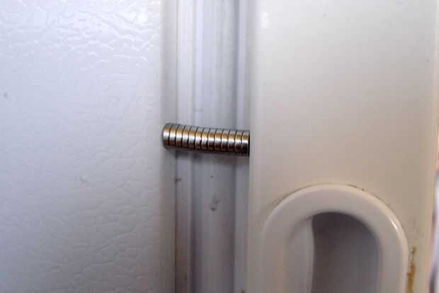 Simplemente mantiene apilando los imanes y probó la puerta de la nevera para ver lo que era un buen ajuste. Esto toma, ¡ oh, alrededor de un minuto.