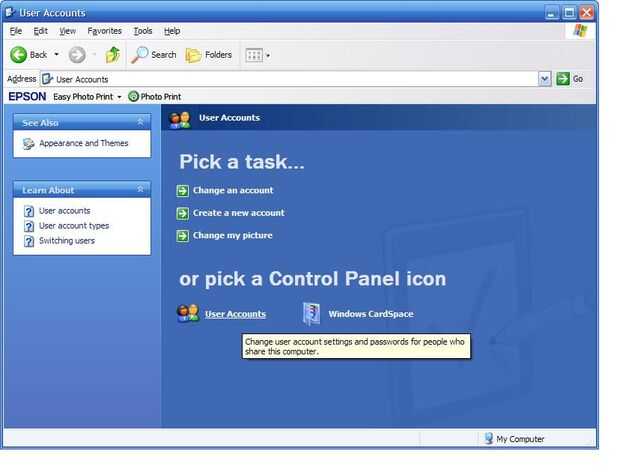 Una de las cosas que la gente generalmente no se dan cuenta es que cuando tienes un montón de cuentas de usuario en su computadora, ralentiza camino abajo. Puede contrarrestar esta borrando simplemente algunos de los usuarios. Cuando se han eliminado los usuarios hacen una carpeta para cada persona que utiliza el ordenador en la carpeta "Mis documentos". Cuando quiere mantener algo en secreto de los otros en el equipo, sólo que el archivo oculto, o ponerlo en un laberinto de carpeta. (explicado en otros instructable) Cuando se han eliminado las cuentas también puede cambiar la forma en que inicie sesión en y fuera de la computadora cambiando la configuración para que iniciar sesión y apagar con el viejo método. (Sin pantalla de bienvenida, a nombre de usuario y contraseña) Esto puede reducir significativamente la cantidad de recursos que utiliza. También cambiar el fondo a un color plano seleccionando ninguno en los escritorio propiedades y elegir un color base. Esto reducirá el tiempo de inicio.