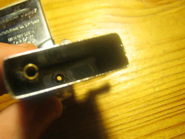 2. Pase la mecha por el agujero que se muestra a continuación. (Asegúrese de que la mecha no está por encima de la chimenea)