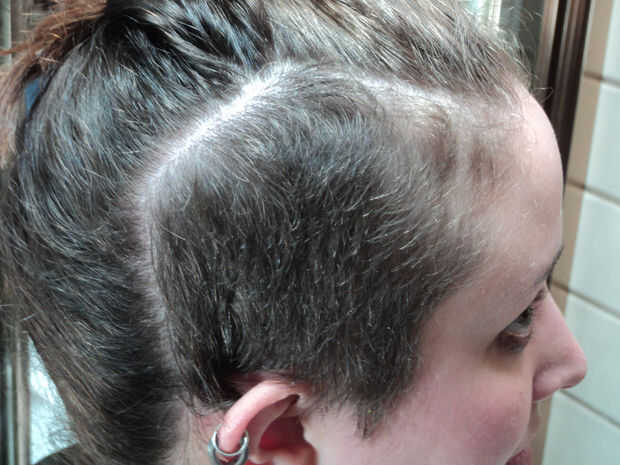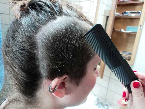 Si usted se está preponiendo no afeitar su cabeza entera debería hacer algo para mantener el resto del cabello fuera del camino. Tengo pelo largo tiró en un moño desordenado y también poner un poco de gel en él también mantener los aways de la mosca en la bahía. Si tiene el pelo más corto, puede debe utilizar horquillas o clips o simplemente gel para mantener el resto de su pelo organizado. Solo no pongas gel en el cabello que desea afeitarse! Limpiar ese pelo!