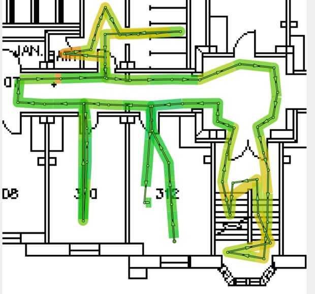 Asignación se puede detener en cualquier momento haciendo clic derecho sobre el mapa. Haciendo esto, un mapa de calor será fijado encima de la imagen de su mapa actual, lo que indica la intensidad de la señal WiFi dentro del área del mapa.