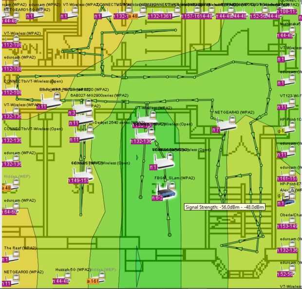 El correspondiente mapa de calor mostrará todos los puntos de acceso disponibles y su correspondiente mapa de calor. Para ver el mapa de calor de un punto de acceso específico, simplemente pase el cursor sobre ese punto de acceso específico.