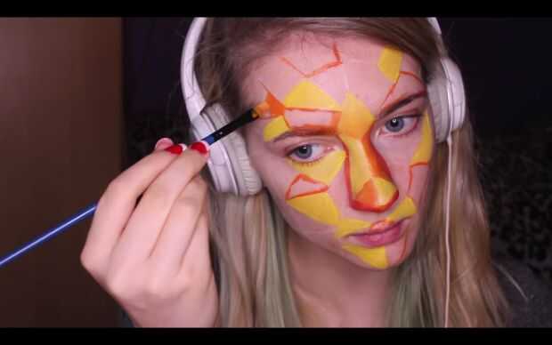 rellena las formas con amarillo, naranja y rojo. Usé estos colores cálidos en los lugares en mi cara donde la luz golpea más. ejemplo: mi nariz, frente, mentón y pómulos.