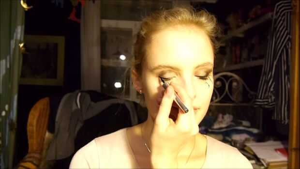 La línea también la línea de flotación y el ojo interior con un lápiz delineador blanco. Utilice una sombra de ojos marrón oscuro para crear el mismo look ahumado como en el ojo del ghoul. Luego refinar el delineador si es necesario.