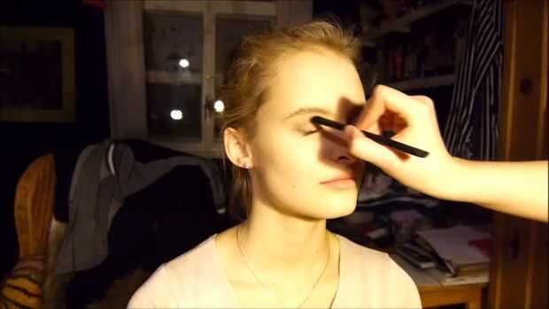 A la base de los ojos, utilizar una sombra de ojos nude y extenderlo sobre la tapa entera. Usar una sombra marrón un poco más oscuro para definir el pliegue.