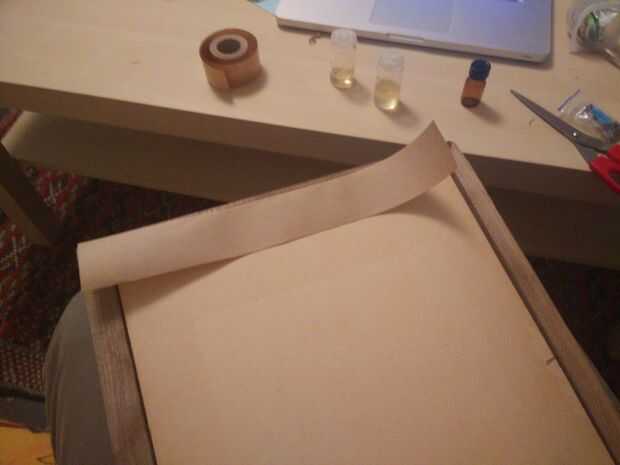 Entonces muy pequeños clavos para sostener el shabang todo y cinta de papel sobre ella para evitar que el polvo penetre en el marco.