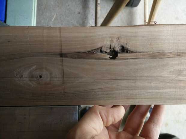 En la foto no es el tajar abajo como yo no llevaba el trabajo yo mismo. Mi abuelo cosecha la madera de un nogal en el jardín de mi bisabuela.