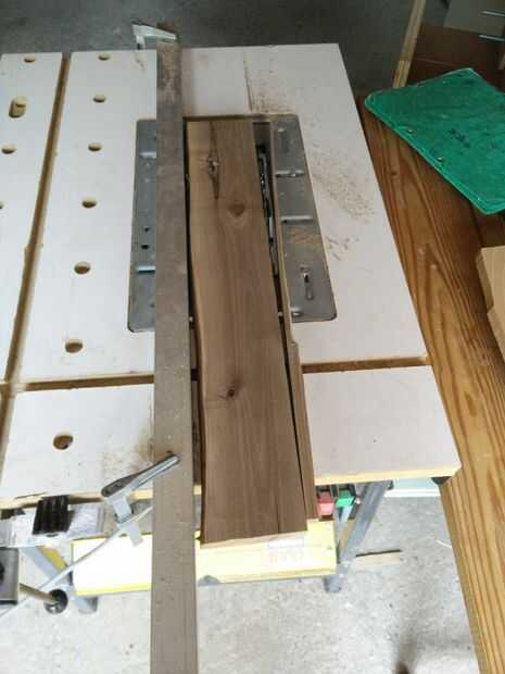 Usando una guía y la Sierra de mesa, corte la tabla en rodajas igualmente amplia. Con un handplane, alrededor de las esquinas exteriores. Uno de los lados de la estructura tendrá un borde vivo y seleccionado un trozo de madera con un montón de nudos para woodyness adicional.