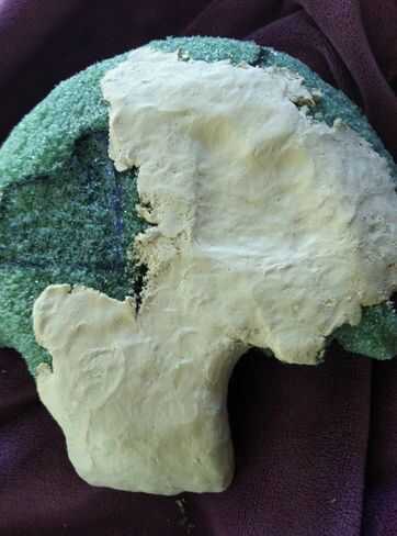 Comenzar a poner arcilla en la mascarilla (arcilla de secado al aire blanca, $5 en el de Michael). No tenga miedo de usar muchos de ellos para cubrir toda la espuma de poliestireno.
