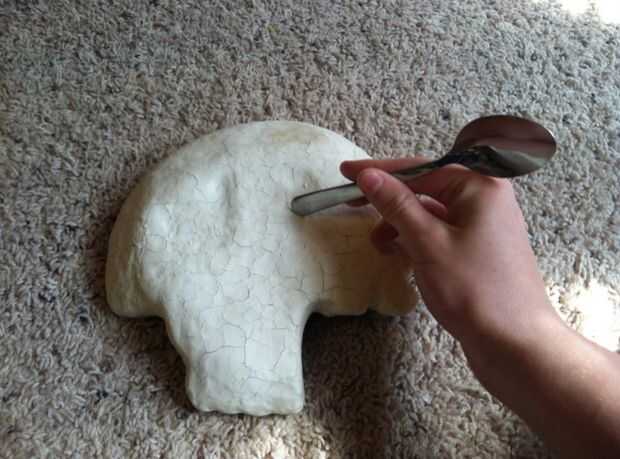 No te preocupes si la máscara de grietas después del secado. Me fijo esto usando el extremo de una cuchara raspar las grietas, o usted puede llenar con más arcilla.