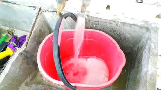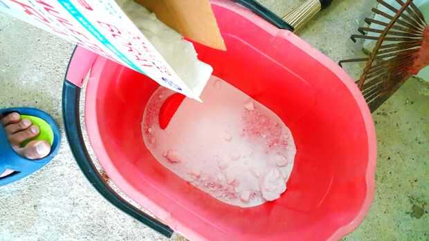 Que cubren la base del cubo, lleno de agua y mezcla bien.