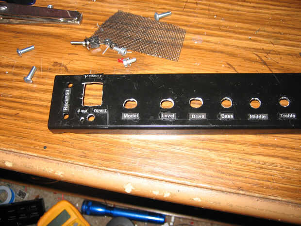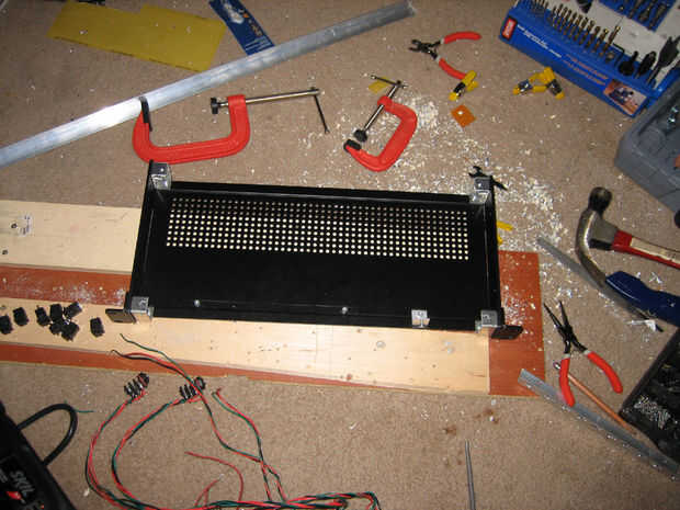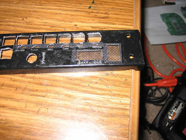 La cubierta en donde los LEDs y el display de 7 segmentos es vino de algunos viejos fino, negro-malla de alambre que tenía por ahí.