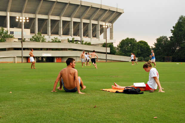En un campus universitario, esto puede ser un poco más difícil. Hay una infinidad de distracciones que pueden ser enumerados. En este caso, tomar en las distracciones. Verlas como un todo, como una vida de juventud en un campus universitario. Observar a la gente jugando deportes, los estudiantes, los contextos sociales que se producen y verlos no individualmente, pero el mundo que actualmente te está rodeando.
