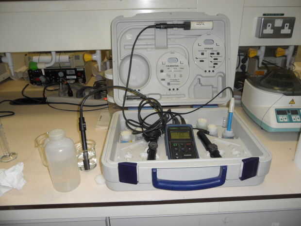Llevar el dispositivo de pH y limpiar o lavar la vara de medir con agua destilada.