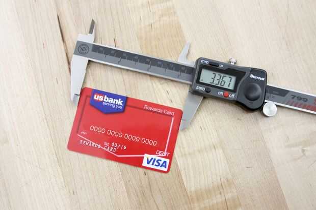 Una típica tarjeta de crédito se mide sobre un poco menos de 3,5 pulgadas de ancho por 2 pulgadas de largo.