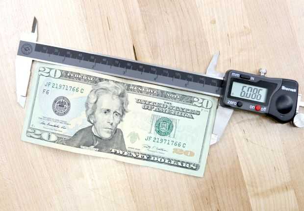 Una nota de la lista de los Estados Unidos mide 6 pulgadas de ancho por 2.5 pulgadas de largo