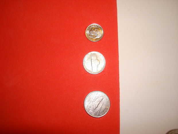 Coloque el cuarto, níquel y moneda de diez centavos sobre la espuma y dibuje un círculo alrededor de cada moneda.