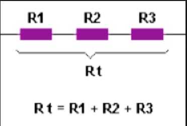 La suma de resistencia en serie nos ayuda a incrementar la resistencia R1 + R2 + R3 (como se muestra en la imagen) puedes ir uniendo resistencias de el extremo de una al extremo de otra las veces que sean necesarias para encontrar la resistencia imagen.