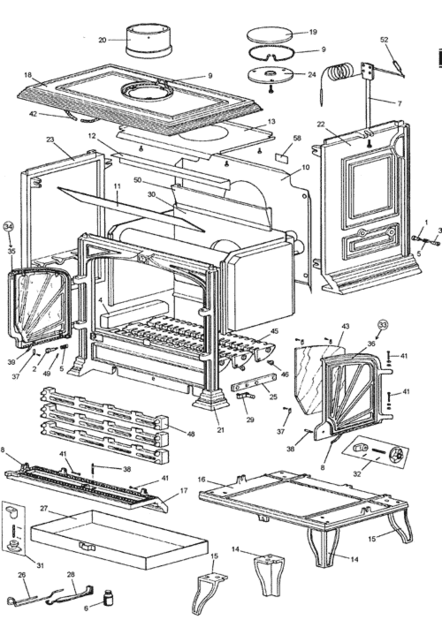 Combustión dentro de la cámara de combustión envía humo, la creosota hollín y la ceniza de la chimenea como el fuego ruge tiene a través de una enorme cantidad de troncos y restos de madera. Tan rápido que quema madera suave en este registro sin modificar de la estufa es trabajo y se hace imposible mantener un fuego, porque muy poca ceniza termina en la ceniza pan mantener brasas para encender el siguiente registro es golpeado y perder, a menudo dando por resultado volver a encender el fuego.