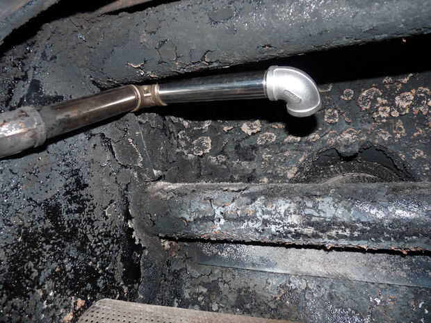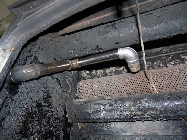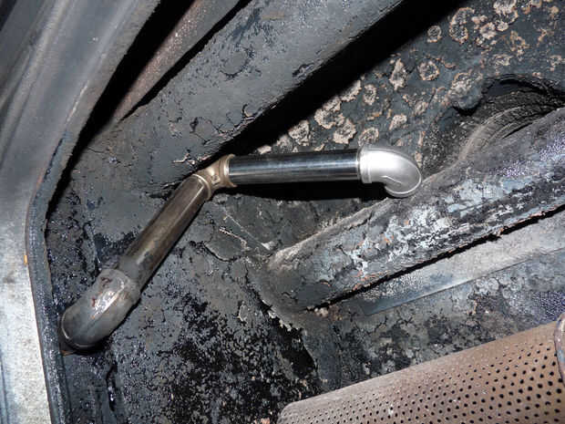 El codo de 90 grados que se encuentra dentro el fuego cerca del orificio taladrado necesario presentar en el interior borde para permitir que se sientan cerca de la caldera de acero suave en el lado. Esto también se presentó un poco borde soldado con autógena, otra vez para permitir que el codo para sentarse correctamente.