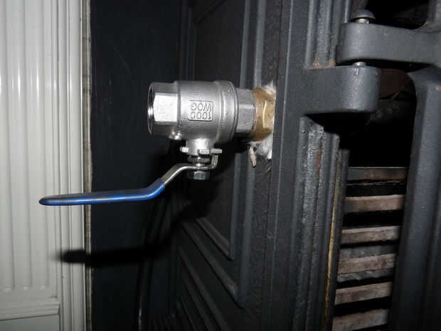 La tubería y los componentes fueron montados como se muestra en las imágenes y video con una curva, aislamiento y tubo de 3 pulgadas de la válvula en la parte exterior para cerrar el aire antes de abrir la puerta para reaprovisionar de combustible y aire a través del fuego cuando la iluminación. Una vez que calienta lo suficiente la válvula sigue totalmente abierta.