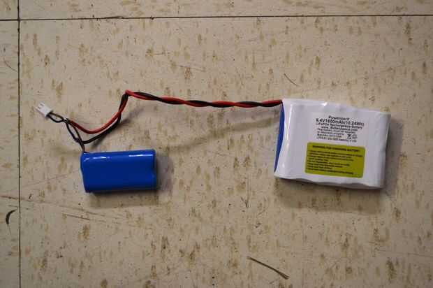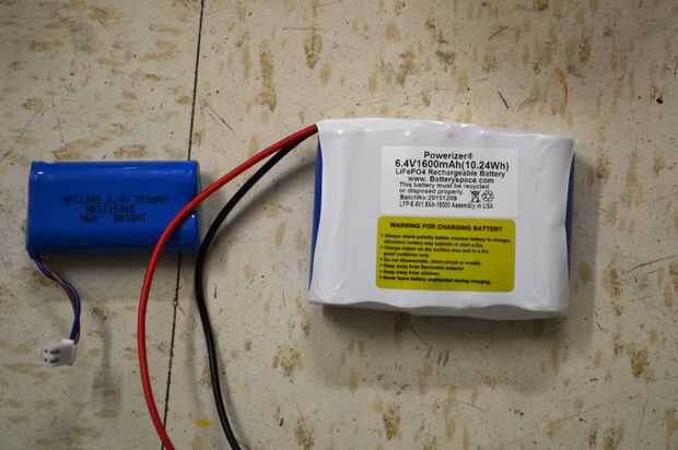 Decidí aumentar la vida añadiendo una batería más grande. He buscado en Internet y encontró una adición conveniente a batteryspace.com. Compré un 6.4V batería recargable de 1600mAh de $30 (envío incluido). Era una batería de LiFePO4 que ofreció el gran ciclo de vida, tensión de descarga constante y gran seguridad (la seguridad era importante porque era a ser incorporadas en un juguete).