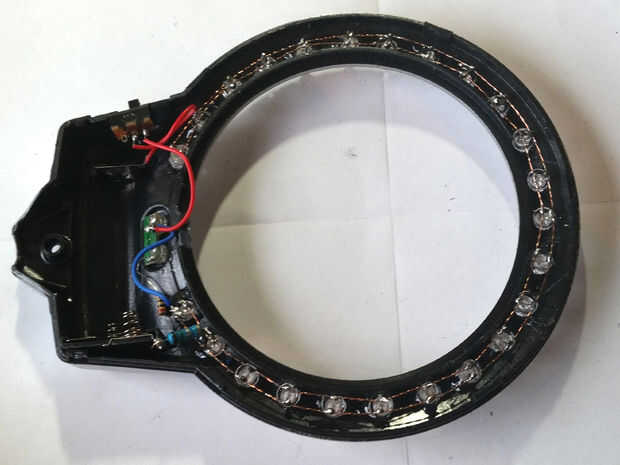 En este paso conectamos todos los leds en paralelo. Para hacer esto usted necesita arreglar todos los leds en una posición regular en cahod es importante para el centro de la circunferencia y el ánodo está mirando fuera del centro. Es importante porque somos sólo para poner un alambre sin aislamientos plásticos y theres no hay posibilidad de saltar el alambre de la siguiente condujo.